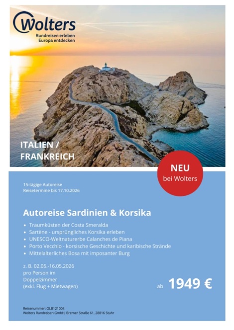 In der Woche vom 29.09. - 04.10.25 testen wir neue Unterkünfte für Sie. Daher bleibt das Büro geschlossen.