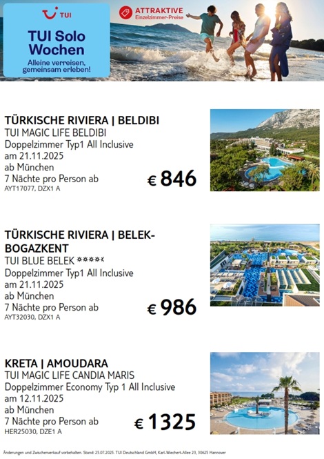 In der Woche vom 29.09. - 04.10.25 testen wir neue Unterkünfte für Sie. Daher bleibt das Büro geschlossen.
